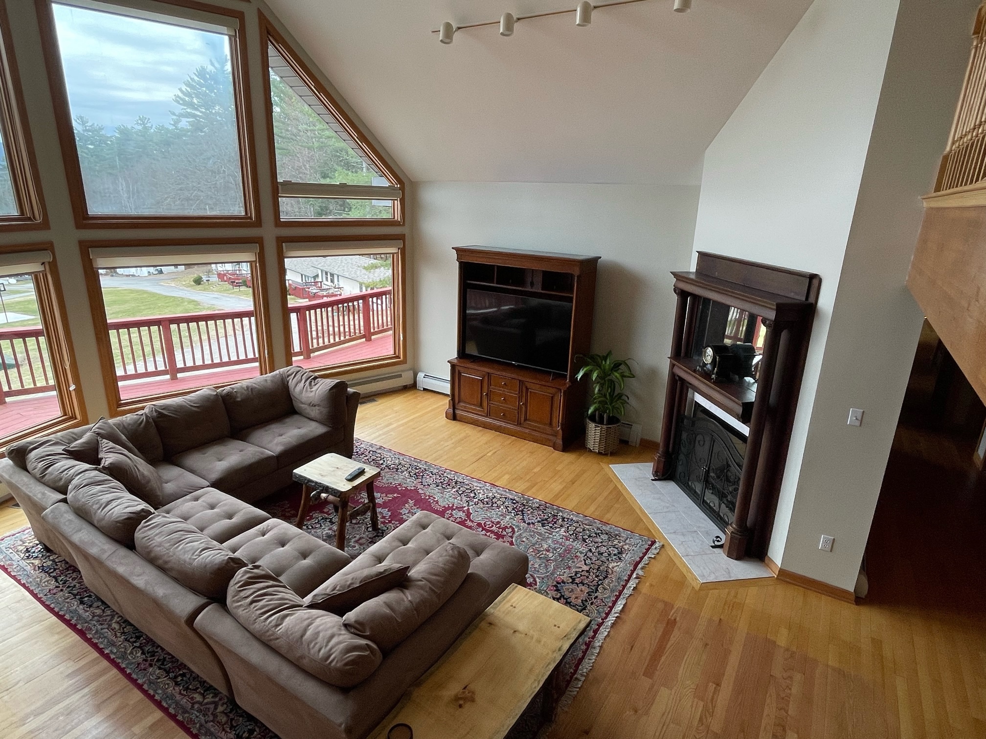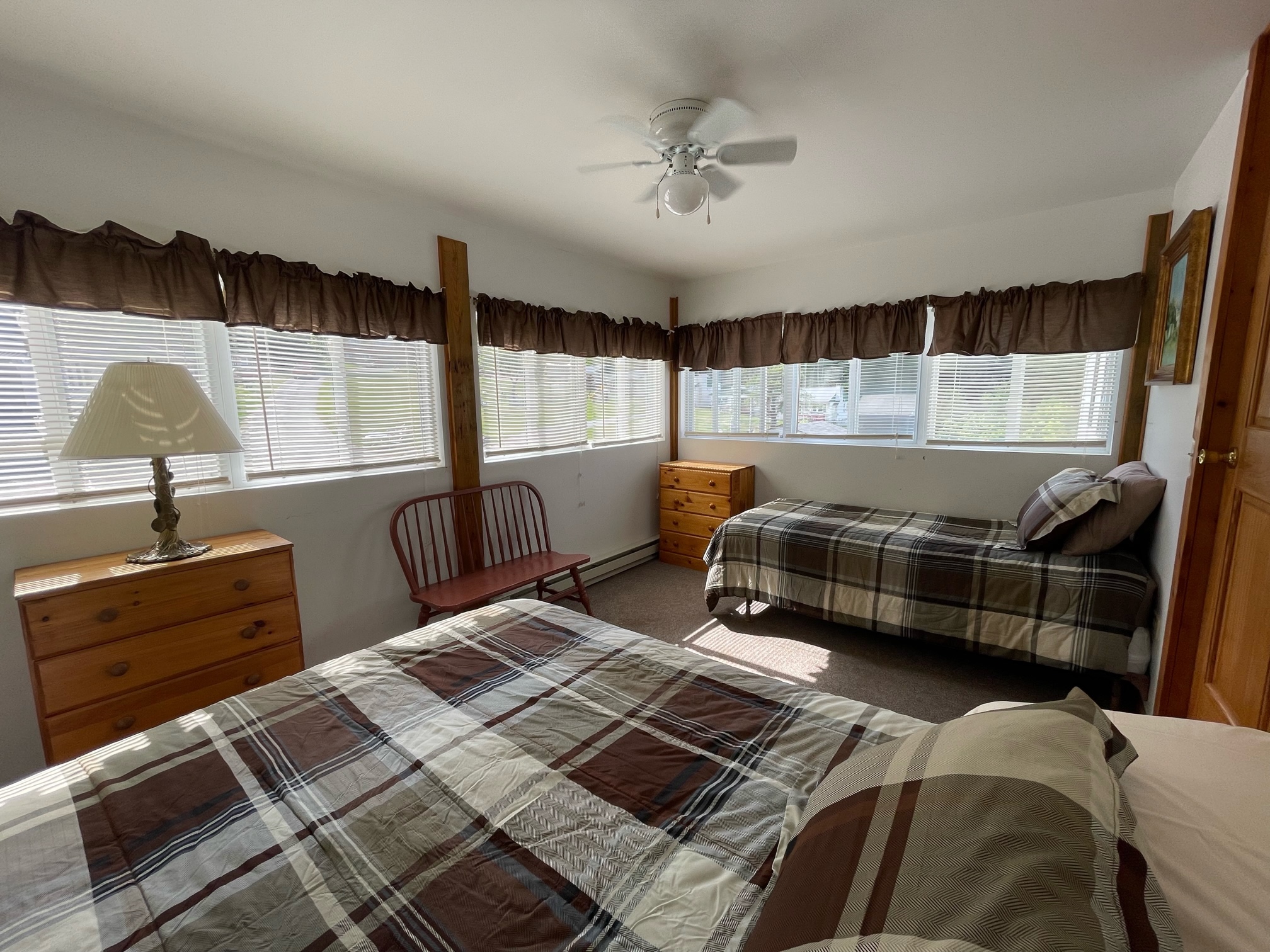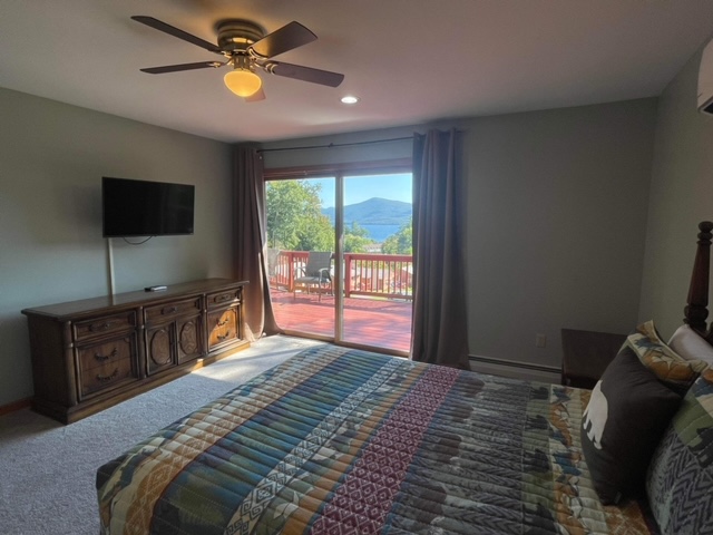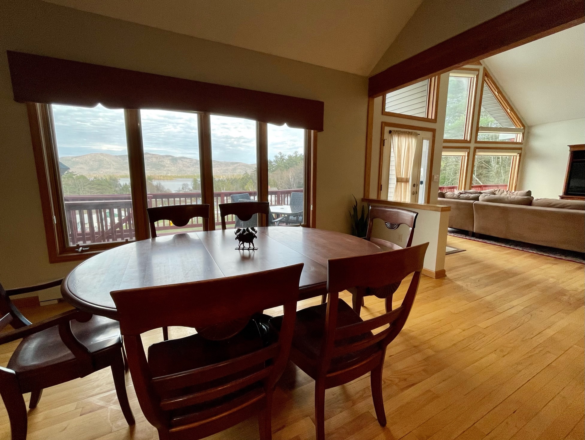 5 Bedroom house with stunning views of Lake George and the surrounding mountains. House is pet friendly. Included is Lake George beach access and access to a heated pool. House can accommodate a total of 10 guests. Included is a full kitchen with counter seating, living room with gas fireplace, a dining room plus a large outdoor covered porch with areas for sitting and dining. Beautiful views from porch. The five bedrooms are on the second floor of the house and a full bathroom is also on the second floor. There is an additional full bathroom on first floor. One of the bedrooms requires passing through another bedroom to access.
